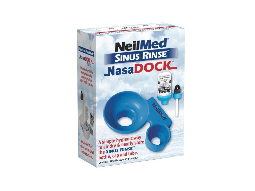 Ať už je proplachování nosu vaší každodenní rutinou nebo nosní sprchu používáte jen občas, NasaDock® vám usnadní její skladování a zároveň sníží riziko jakéhokoli znečištění lahví Sinus Rinse™. Stojan NasaDock® se také přizpůsobí vašim potřebám, protože jej můžete připevnit na téměř jakýkoli čistý povrch a je vhodný pro všechny velikosti lahví. Šetřete místo a uložte svou nosní sprchu v bezpečí před znečištěním.