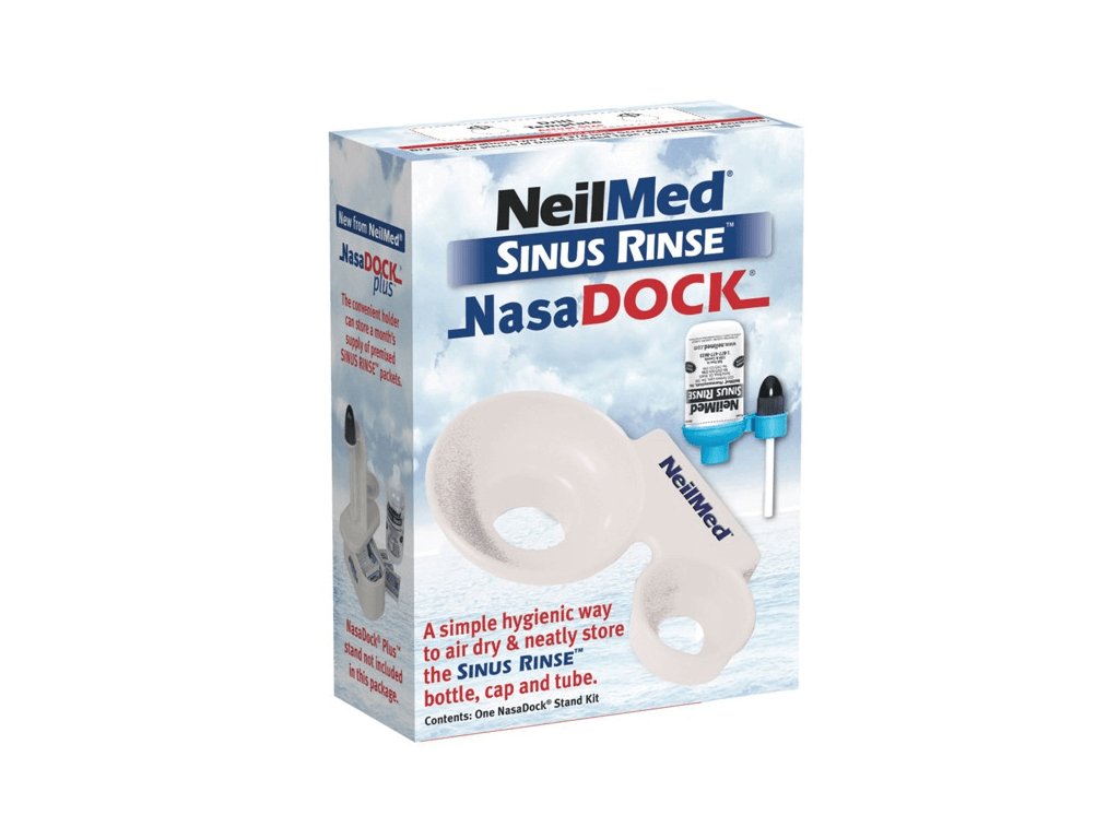 Ať už je proplachování nosu vaší každodenní rutinou nebo nosní sprchu používáte jen občas, NasaDock® vám usnadní její skladování a zároveň sníží riziko jakéhokoli znečištění lahví Sinus Rinse™. Stojan NasaDock® se také přizpůsobí vašim potřebám, protože jej můžete připevnit na téměř jakýkoli čistý povrch a je vhodný pro všechny velikosti lahví. Šetřete místo a uložte svou nosní sprchu v bezpečí před znečištěním.