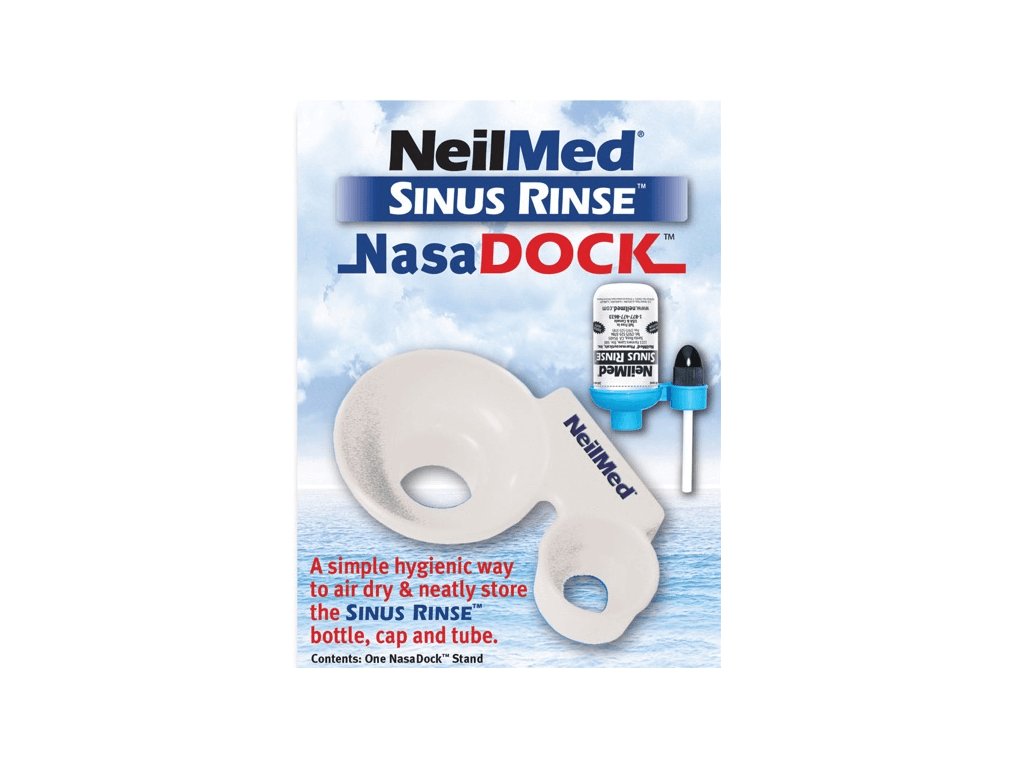 Ať už je proplachování nosu vaší každodenní rutinou nebo nosní sprchu používáte jen občas, NasaDock® vám usnadní její skladování a zároveň sníží riziko jakéhokoli znečištění lahví Sinus Rinse™. Stojan NasaDock® se také přizpůsobí vašim potřebám, protože jej můžete připevnit na téměř jakýkoli čistý povrch a je vhodný pro všechny velikosti lahví. Šetřete místo a uložte svou nosní sprchu v bezpečí před znečištěním.